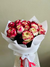 หรูหราและโรแมนติกไม่รู้จบ ช่อดอกไม้ Cream Peach Caress เต็มไปด้วยกุหลาบสวนที่บอบบางในโทนสีพีชครีมและชมพูอ่อน ห่อด้วยกระดาษสีพาสเทลอุ่นๆ พร้อมข้อความว่า “ทุกวันฉันรักคุณ” ช่อดอกไม้นี้เป็นการแสดงออกอย่างมีศิลปะของความรัก ความอ่อนโยน และความซื่อสัตย์ เหมาะสำหรับวันครบรอบ การสารภาพรัก หรือเพียงแค่เพื่อบอกว่า “คุณมีค่า”